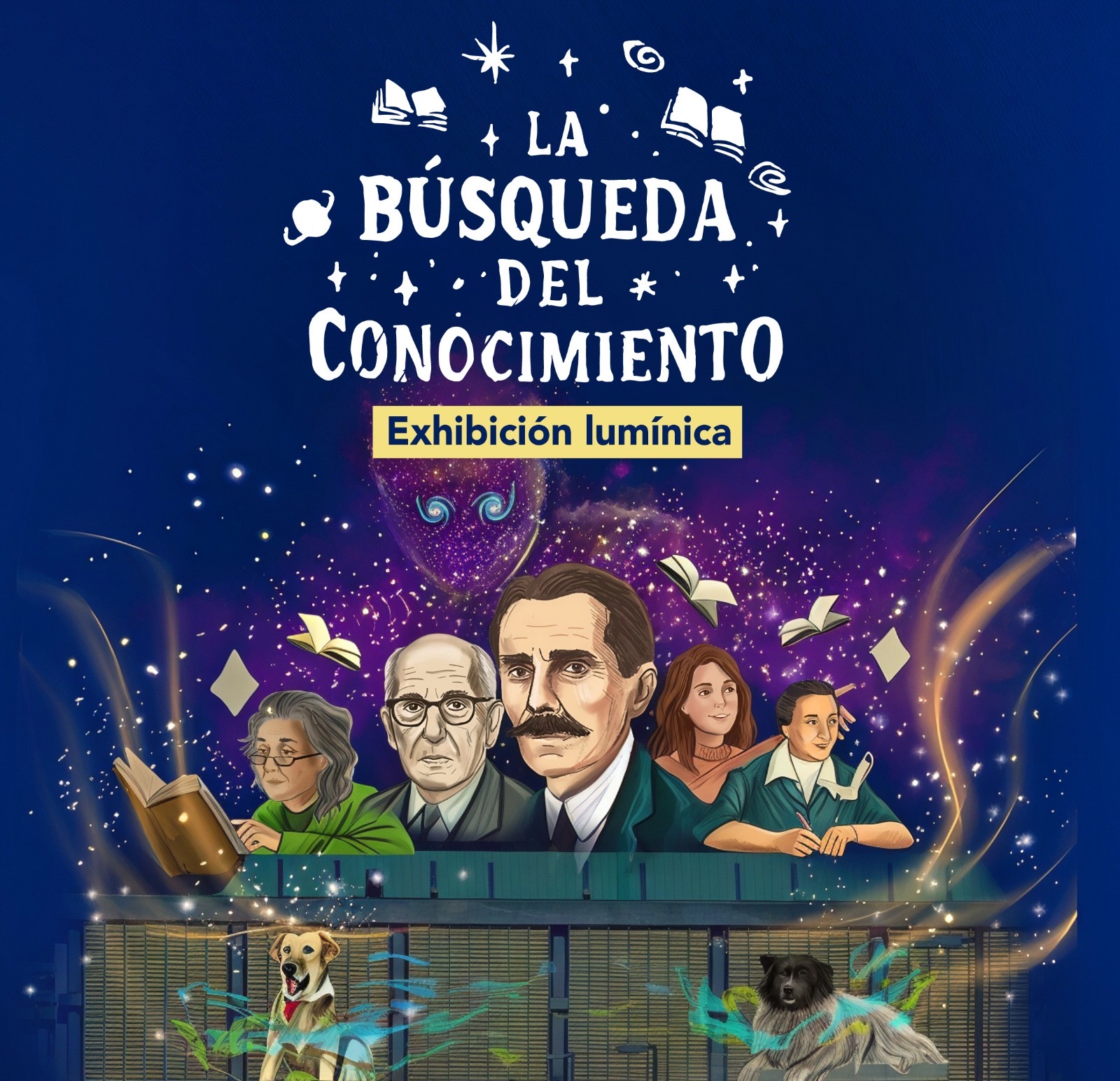 “La búsqueda del Conocimiento” es una exhibición lumínica que se exhibirá el 11 de abril a las 20 horas, este sábado, en la biblioteca central de la Universidad de Concepción. Al ser una exhibición lumínica de carácter masivo, esto se proyecta a través de grandes proyectores lumínicos en toda la fachada de esta gigantesca estructura. Desde este enfoque monumental vamos a contar una historia, un viaje en el tiempo por 100 años de historia de las bibliotecas de la Universidad de Concepción. Vamos a recurrir a diferentes hitos, eventos históricos que ocurrieron en estas grandes 10 décadas, donde arquetipos de personajes como el profesor, estudiantes, rectores, bibliotecarias, también quienes fueron parte del sueño fundador de la Universidad de Concepción, van a ser la forma narrativa en la que ingresamos a mundos diversos, donde lo surreal, la magia, lo abstracto y también lo misterioso van a encontrarse en un punto en común, los libros y cómo la Universidad de Concepción, a través de sus bibliotecas, ha creado estas plataformas para que la ciudadanía, los habitantes de este territorio, puedan encontrarse con la profunda sabiduría de estos textos. Es así como la corporación cultural Actos Sinestésicos, trabajando en colaboración con el departamento y la división de bibliotecas de la Universidad de Concepción, ha podido crear esta obra lumínica que nos invita a reunirnos en familia, a disfrutar del espectáculo que nosotros nos va a enseñar, nos va a sorprender, nos va a conmover, nos va a hacer sentir parte de esta larga historia”.